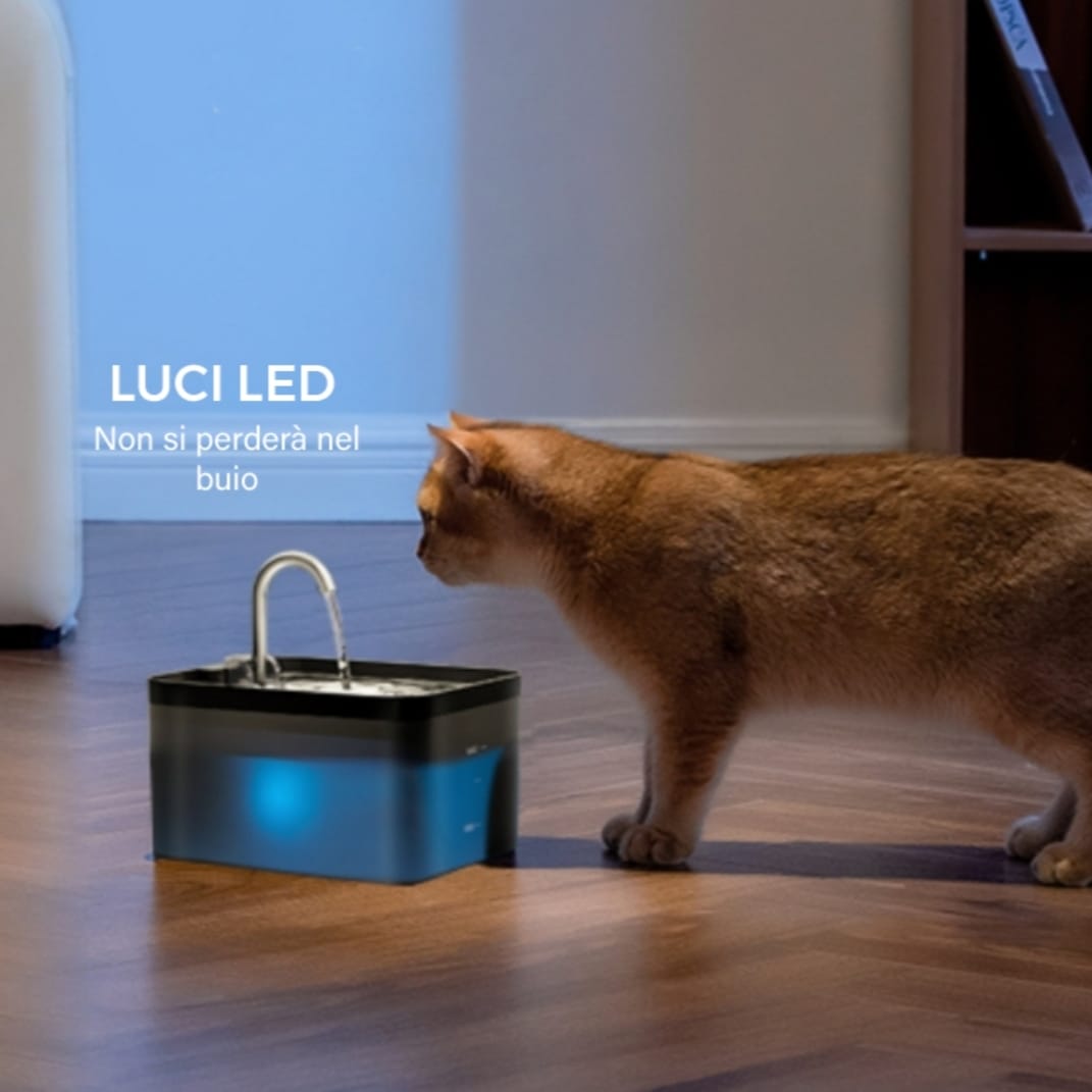 LED: il serbatoio dell'acqua traslucido della fontanella gatti consente di monitorare il livello dell'acqua in qualsiasi momento e la luce LED consente al tuo gatto di trovare la fontana gatto più velocemente.